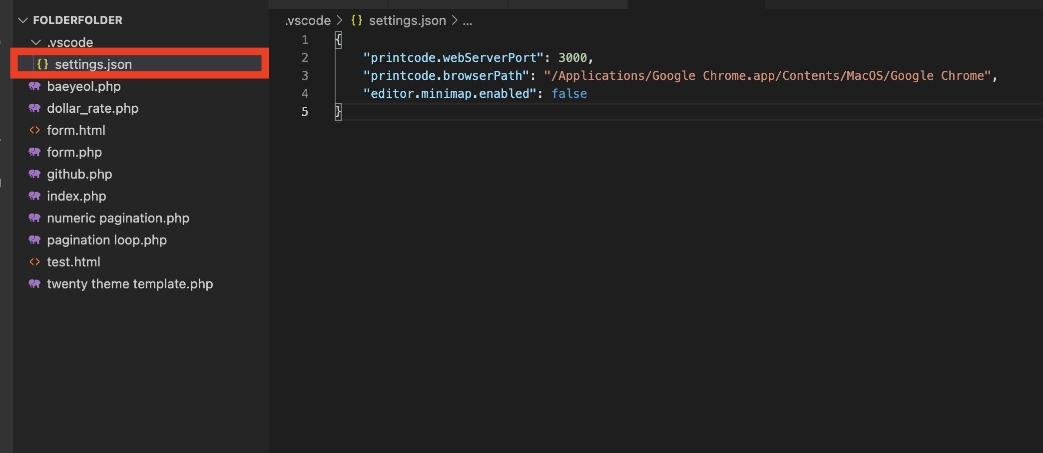 setting.json은 왼쪽 사이드바에서 쉽게 찾을 수 있다