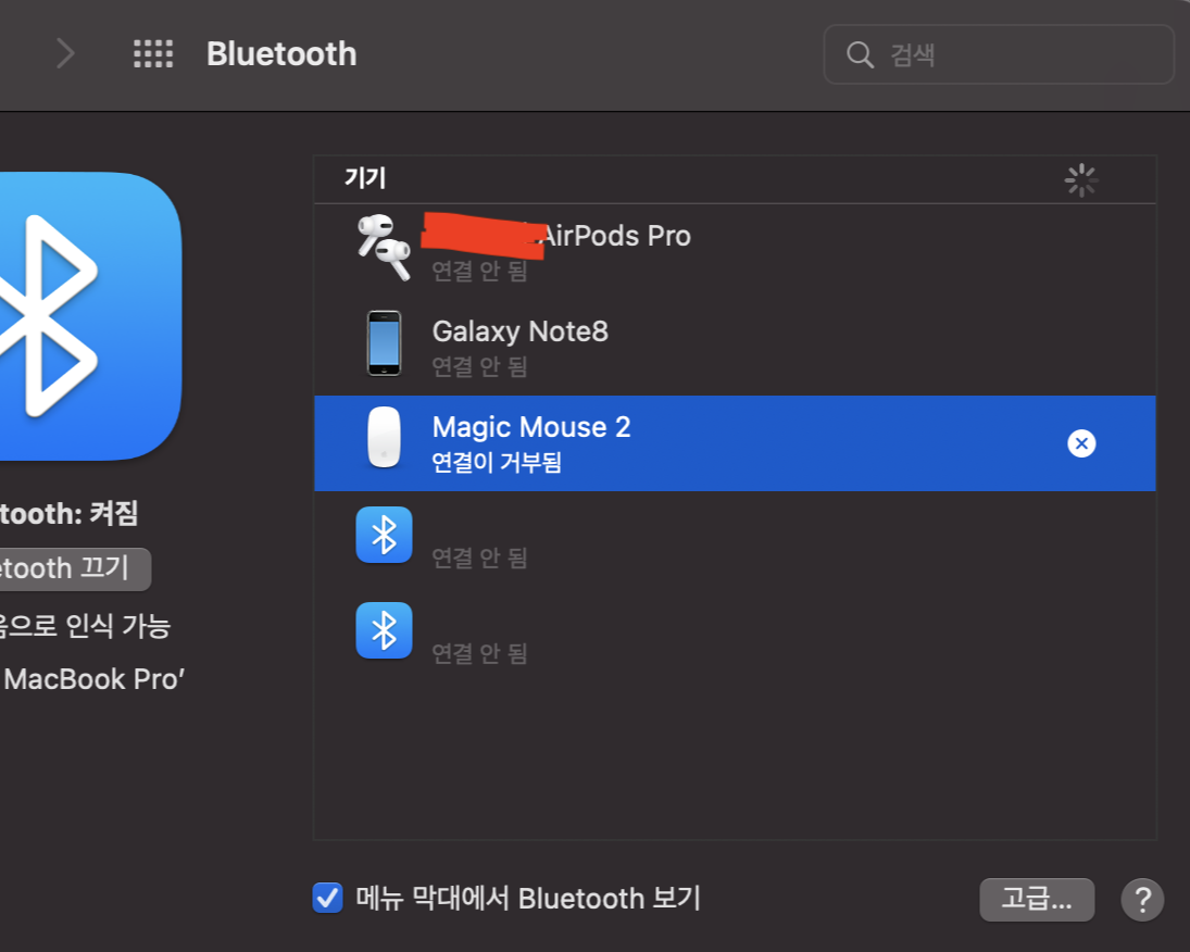 3. 매직마우스 연결이 거부됨 복합적인 이유들