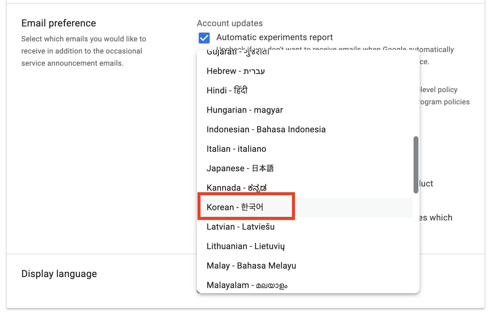 2. 하단 Display language 변경