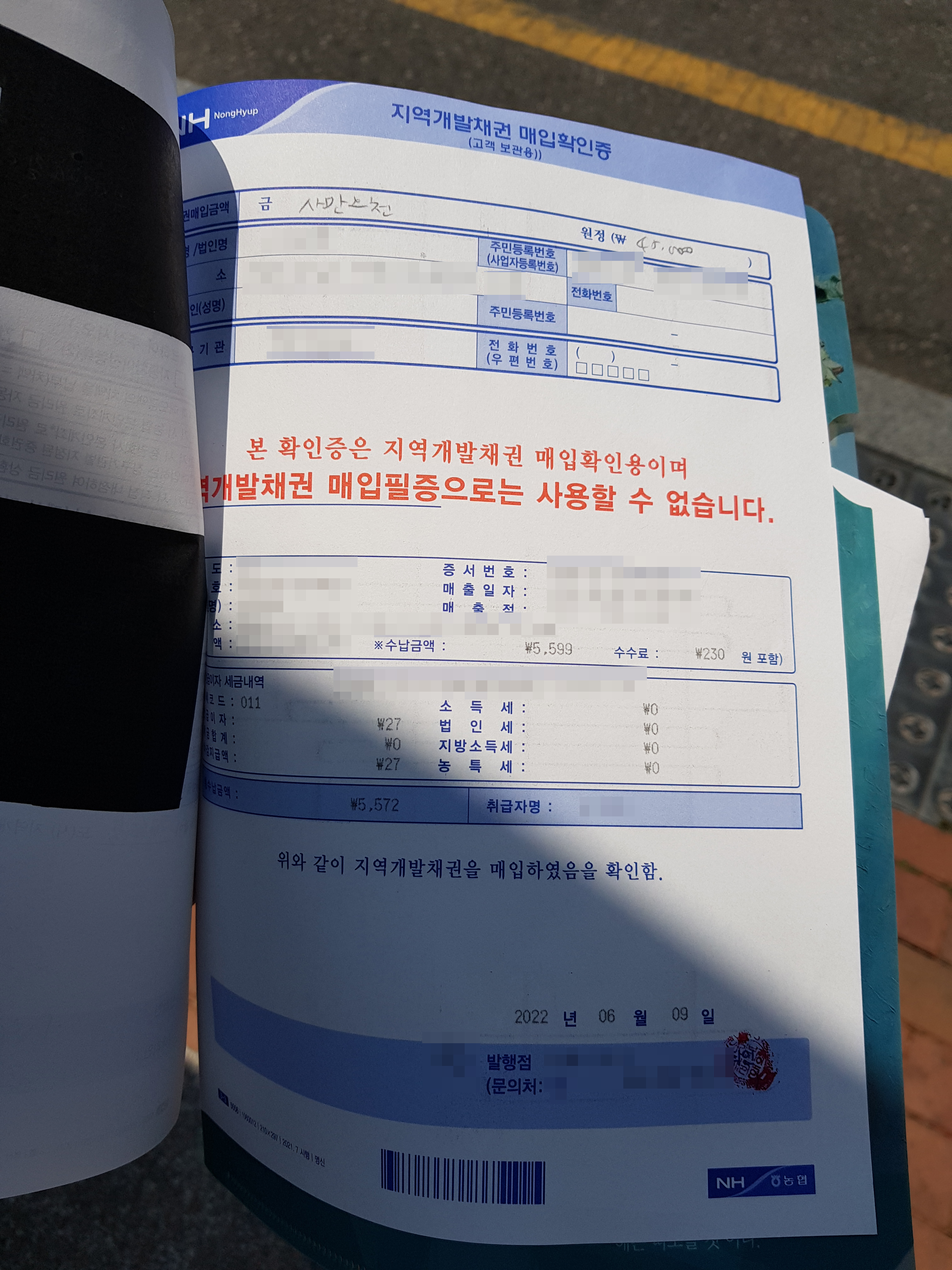 2번째장인 지역개발채권 매입필증과