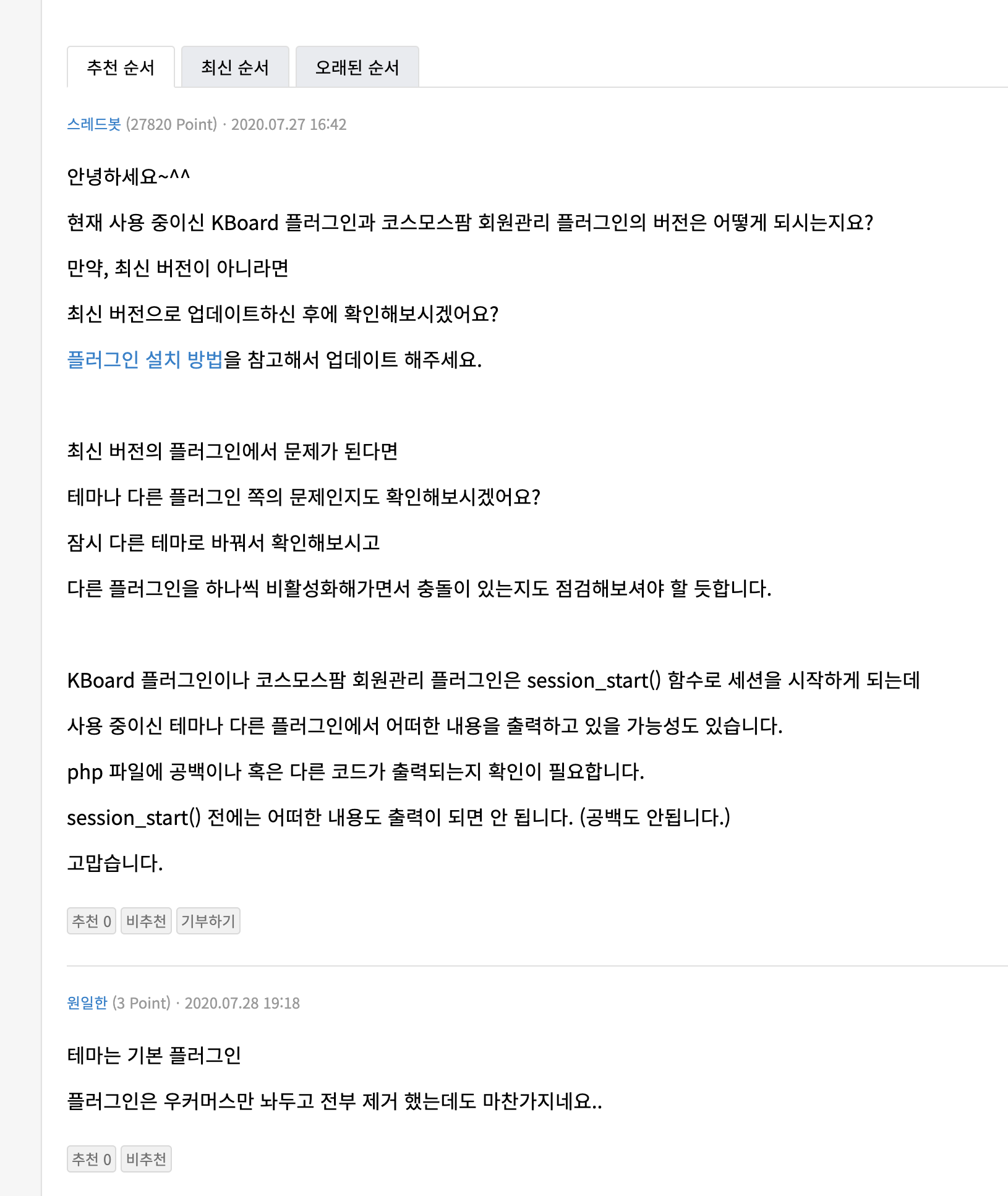 * 그렇다묜 코스모스팜, 케이보드 관련 플러그인을 제외한 모든 플러그인을 끄면 정상으로 돌아오는가?