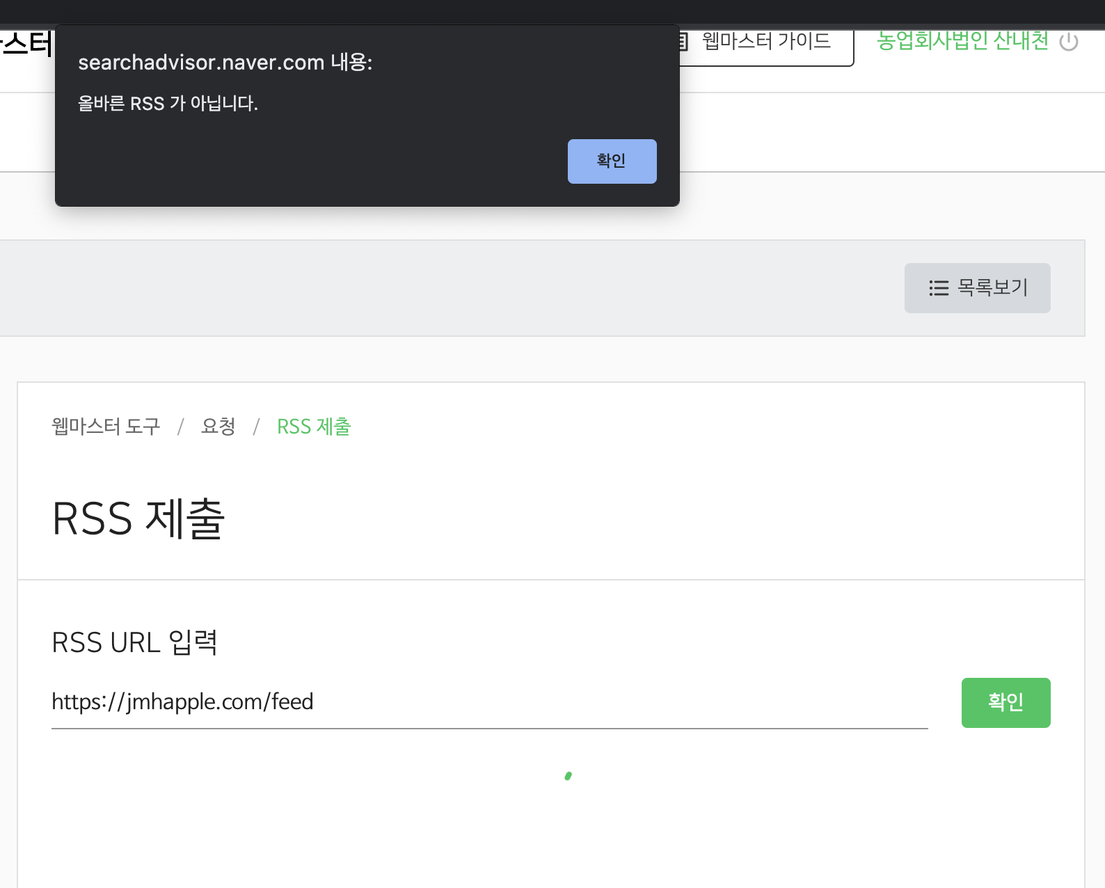사이트주소/feed를 넣었더니 올바른 rss가 아니란다