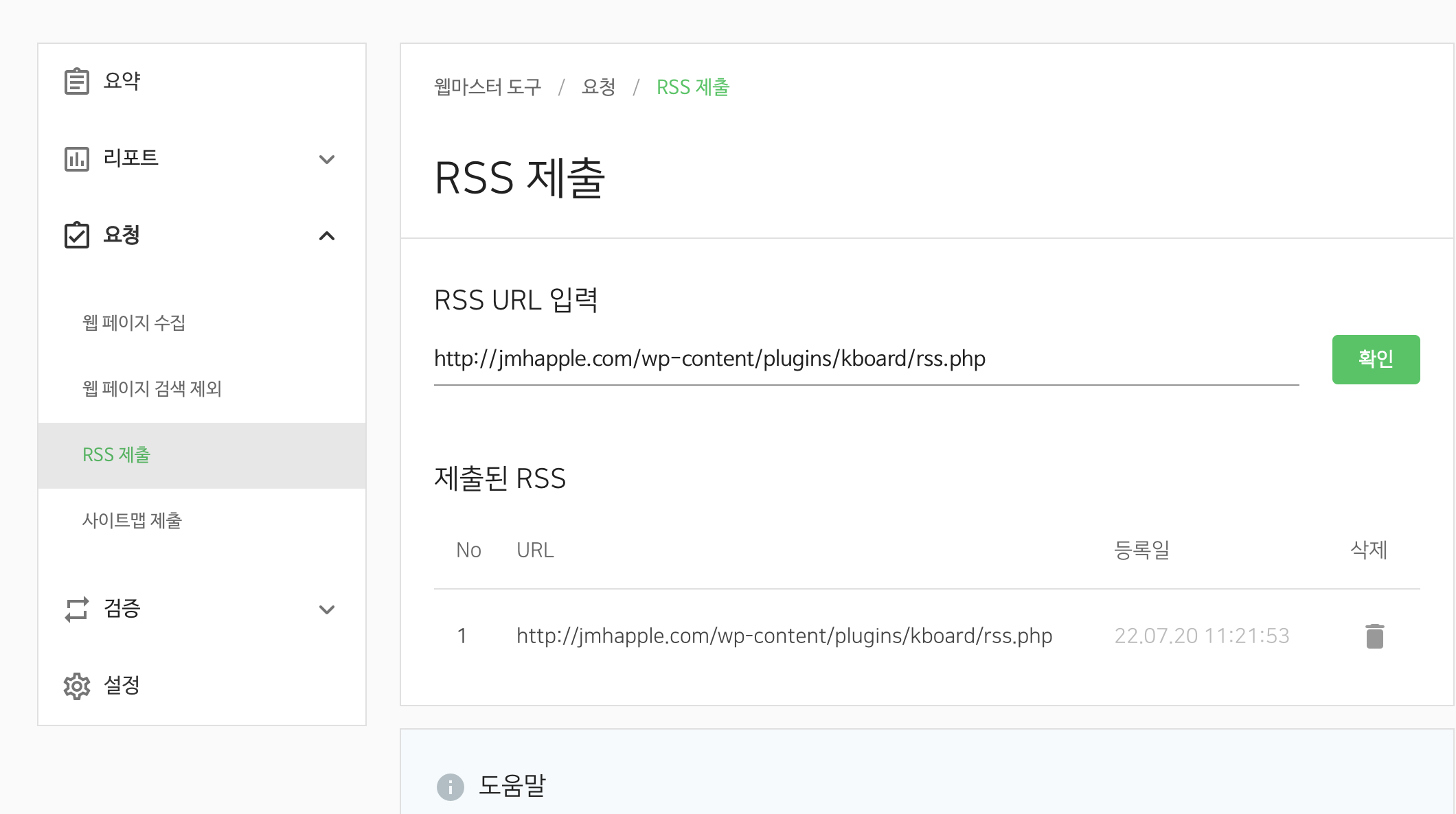 네이버에 rss url을 제출하면 이렇게 정상적으로 제출되는 것을 확인할 수 있다