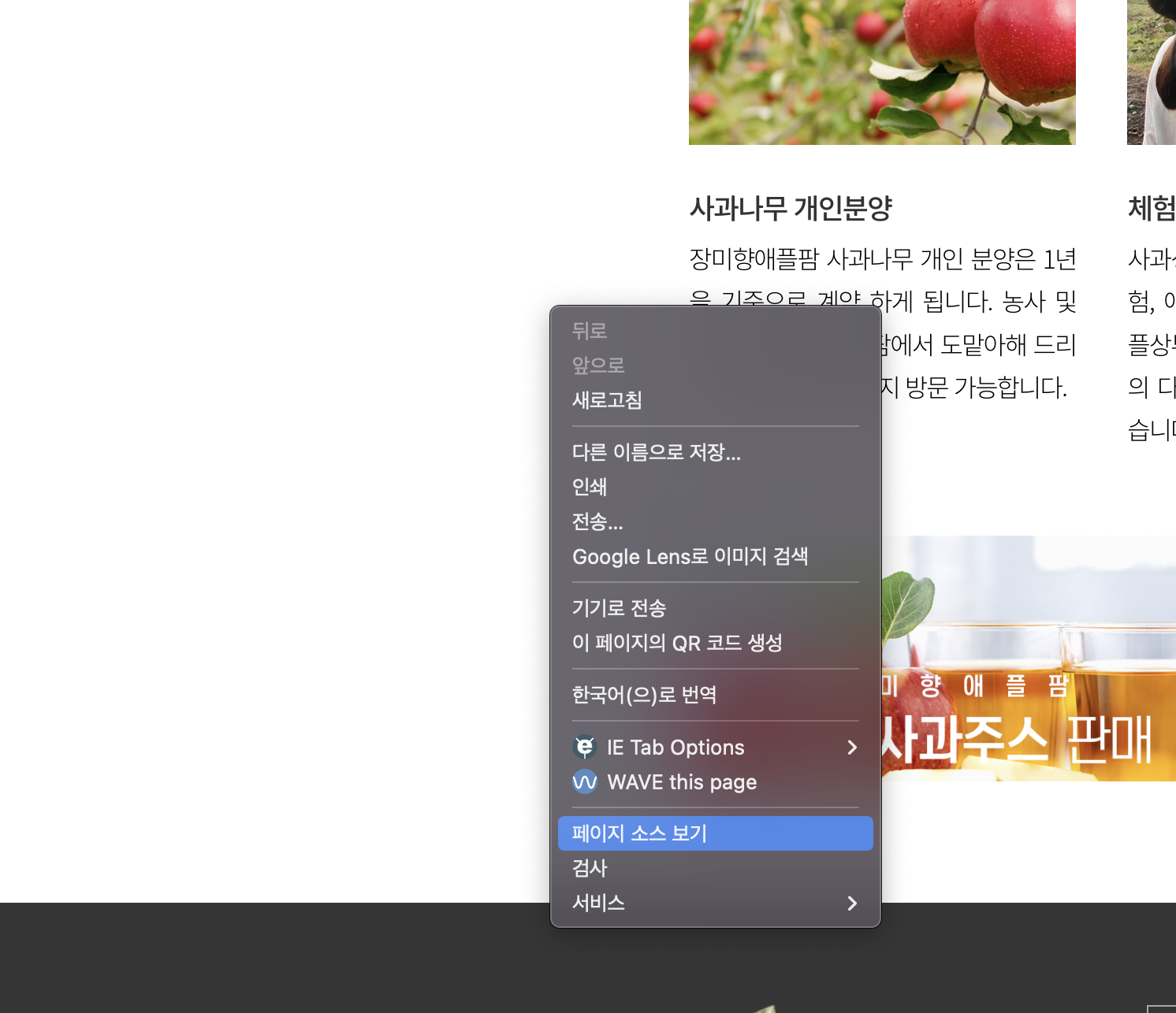1.1 홈페이지에서 오른쪽 마우스 클릭 - 페이지 소스보기