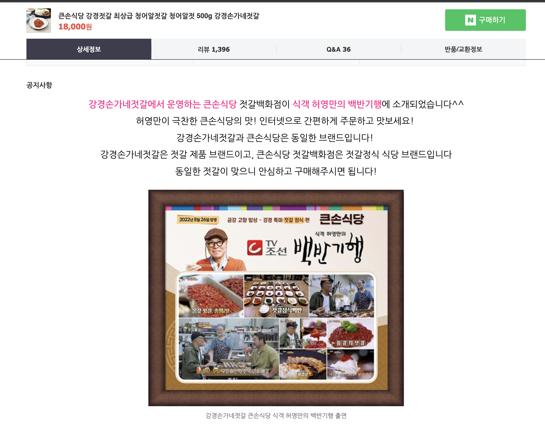 실은 젓갈 브랜드명과 식당 브랜드명이 달라 같은 곳인줄 몰랐는데 얼마 전 네이버 스토어팜을 보니 이렇게 뙇!