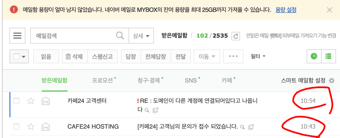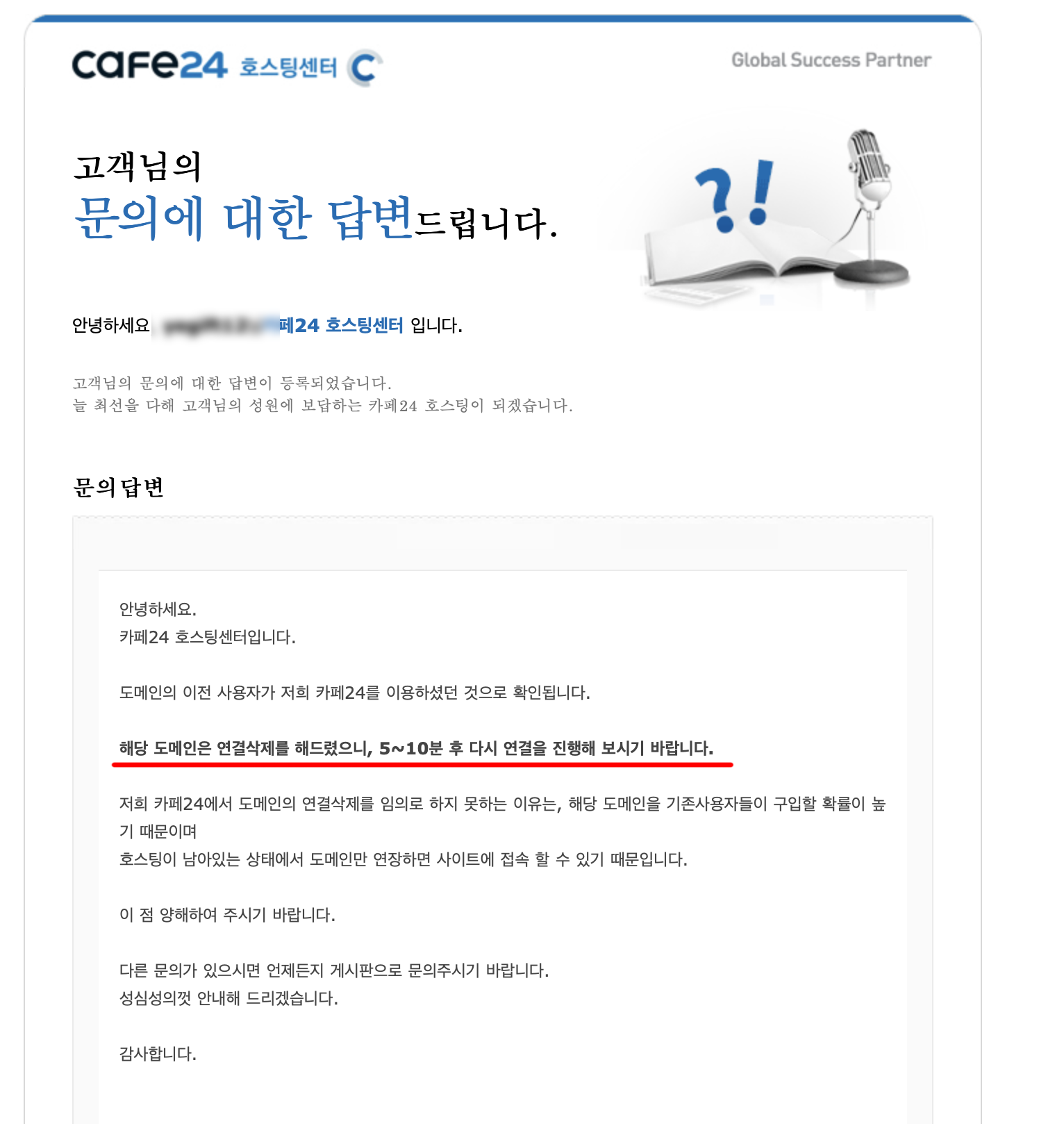 까페24 고객센터에 문의한다 / 아 물론 창피하니까 민석이가 내 도메인을 쓰고 있다고는 말하지 않고