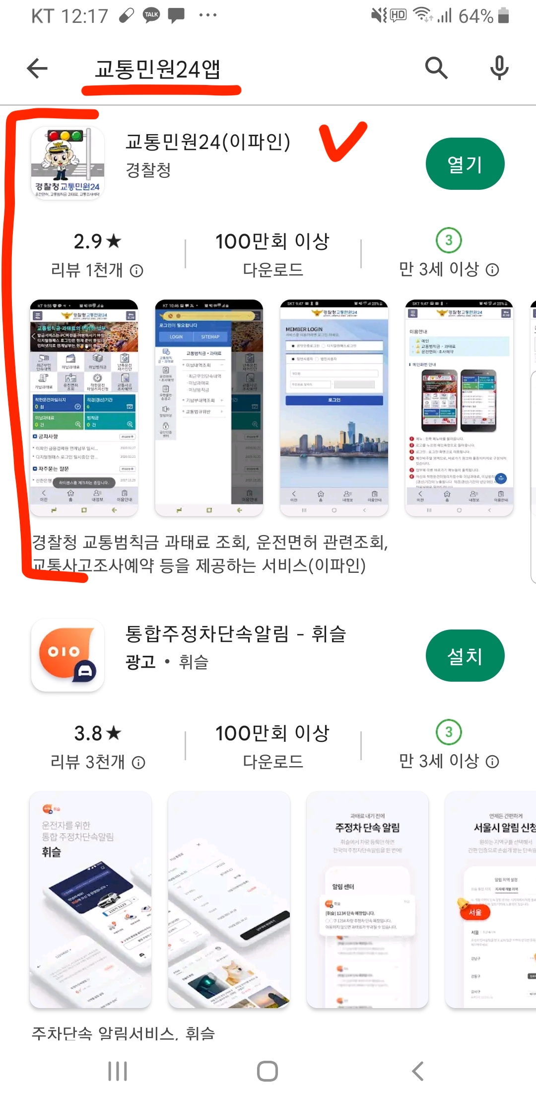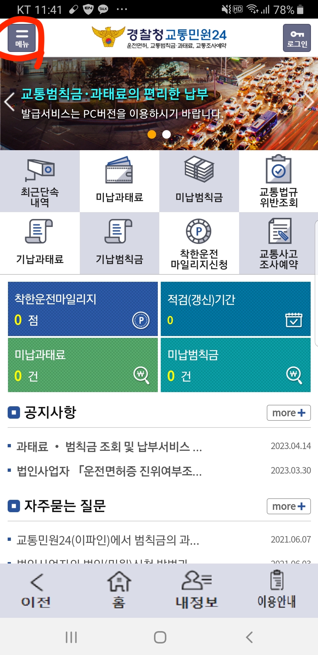 이파인인가 머시깽인가가 앱으로도 나와있다 이름하여 교통민원24(이파인)이다