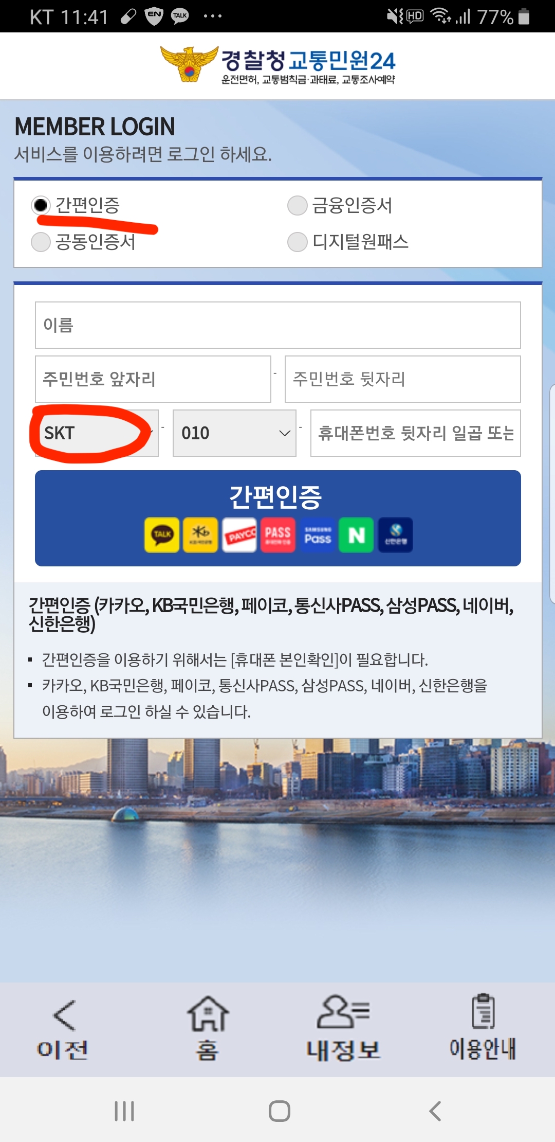 알뜰폰KT 사용자로서 잠시 절망할 뻔 했으나 밑져야 본전이기에, 그냥 KT를 선택하고 인증받기를 했더니 먹히더라
